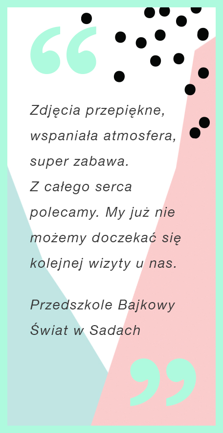 Jesteśmy absolwentkami poznańskiego ASP i fotografią zajmujemy się od lat. Ale przede wszystkim jesteśmy mamami, dlatego wiemy, że gwarancją najlepszych zdjęć jest po prostu świetna zabawa! Podczas sesji przykładamy ogromną wagę do atmosfery.